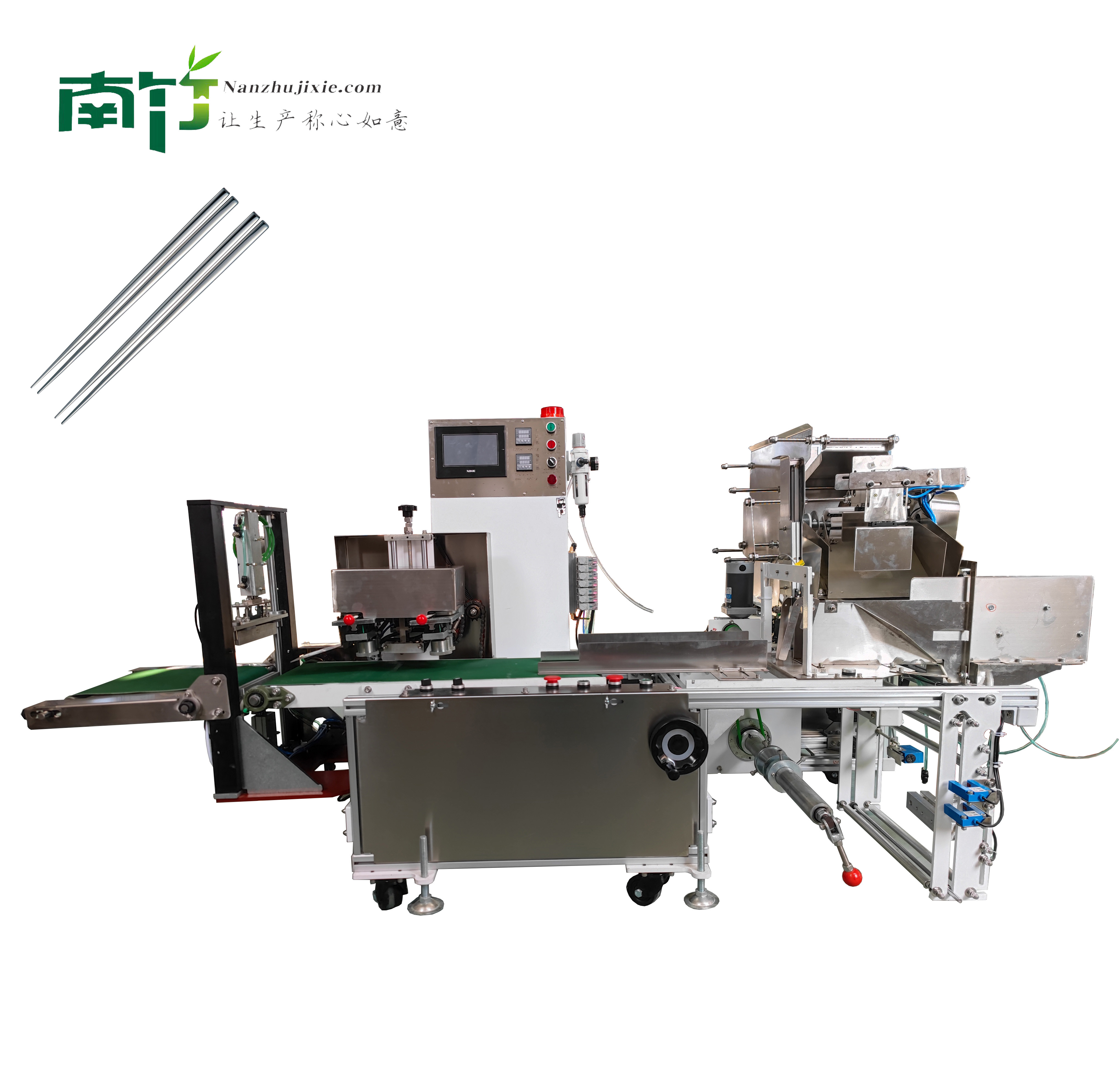 NZDZDS-G300单料斗点数包装机是南竹机械出品的第一代点数包装机,目前市场上被广泛应用。设备具有稳定性好、产能高、计数准确、能耗低和自动化程度高等优点。可用于18-24公分范围内的双生筷、工艺筷、不锈钢筷和合金筷的包装。在设备上设置好数量之后,设备会自动计数,然后将要求数量的筷子包成一包。所采用的零部件均由南竹设备制造厂本厂自主研发加工。一流的数控生产设备为产品的高精度要求保证了长期的稳定性。设备所使用的程序也由南竹机械自主研发,在设备升级、优化及客户特殊要求的定制机上拥有绝对主动权!本设备还拥有色标跟踪定位(对已印刷好的opp膜和淋膜纸进行色标跟踪定位)和数控调节长短(调节18-24公分范围内的筷子不需要更换齿轮刀轮)等功能,大幅度降低了工人工作时的压力。其人性化的功能更是得到行业内用户的一致好评!在售后上南竹机械拥有强大的售后团队,更是秉承初衷-让生产称心如意!